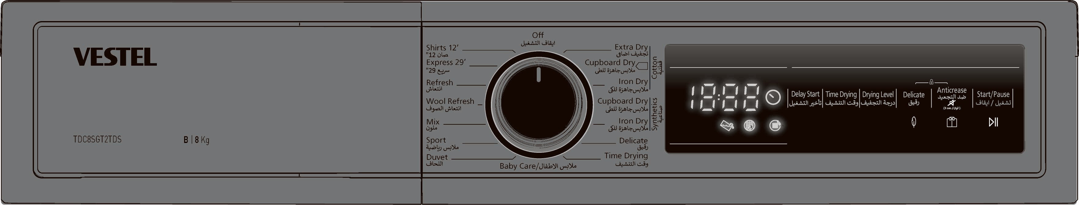 VESTEL CONDENSER DRYER , 8 KG , PEARL DRUM , 1200 RPM , NOISE LEVEL 65dB , DRUM VOLUME 101L... Read more